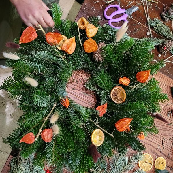 Get into the creative spirit with our hands-on wreath making workshop! You'll start with a moss base and build your own unique wreath using a gorgeous selection of fresh, seasonal greenery. Choose from an array of flowers, foliage, berries, and natural accents to design something truly your own. With step-by-step guidance from our florist, you'll learn professional tips and techniques in a relaxed, fun atmosphere. No experience needed. Leave with a beautiful, handcrafted wreath and the skills to make more!